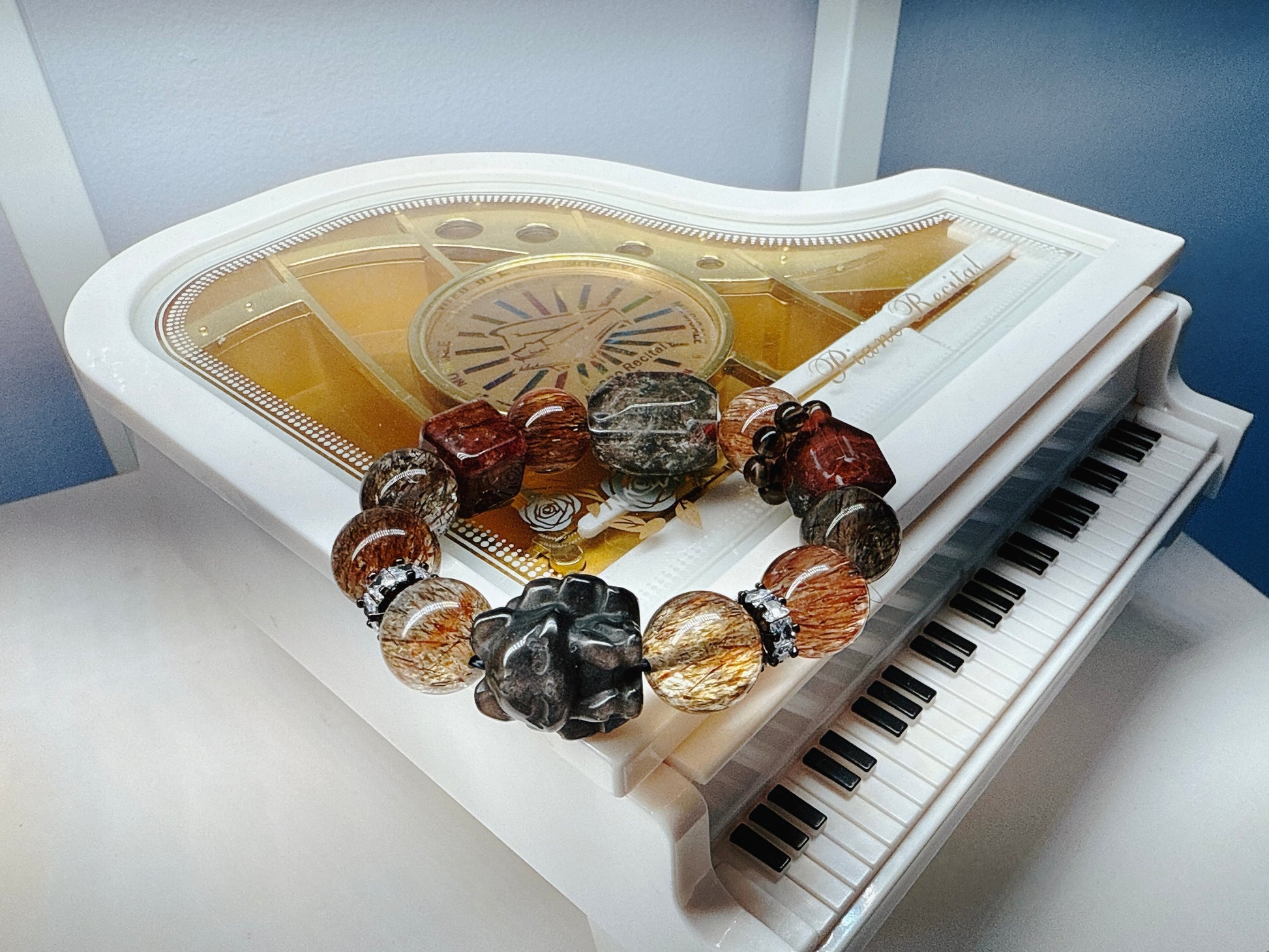 Super 7 13mm+ with 12mm+ garden phantom / fox silver obsidian