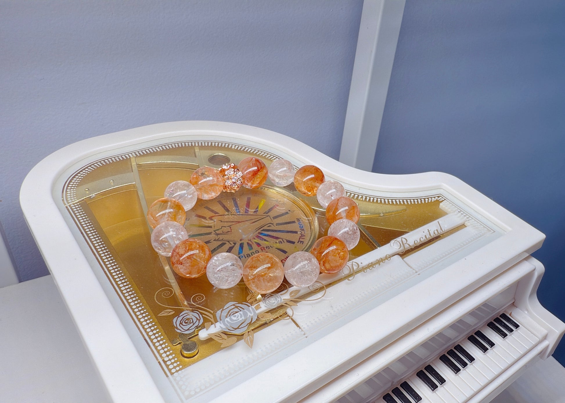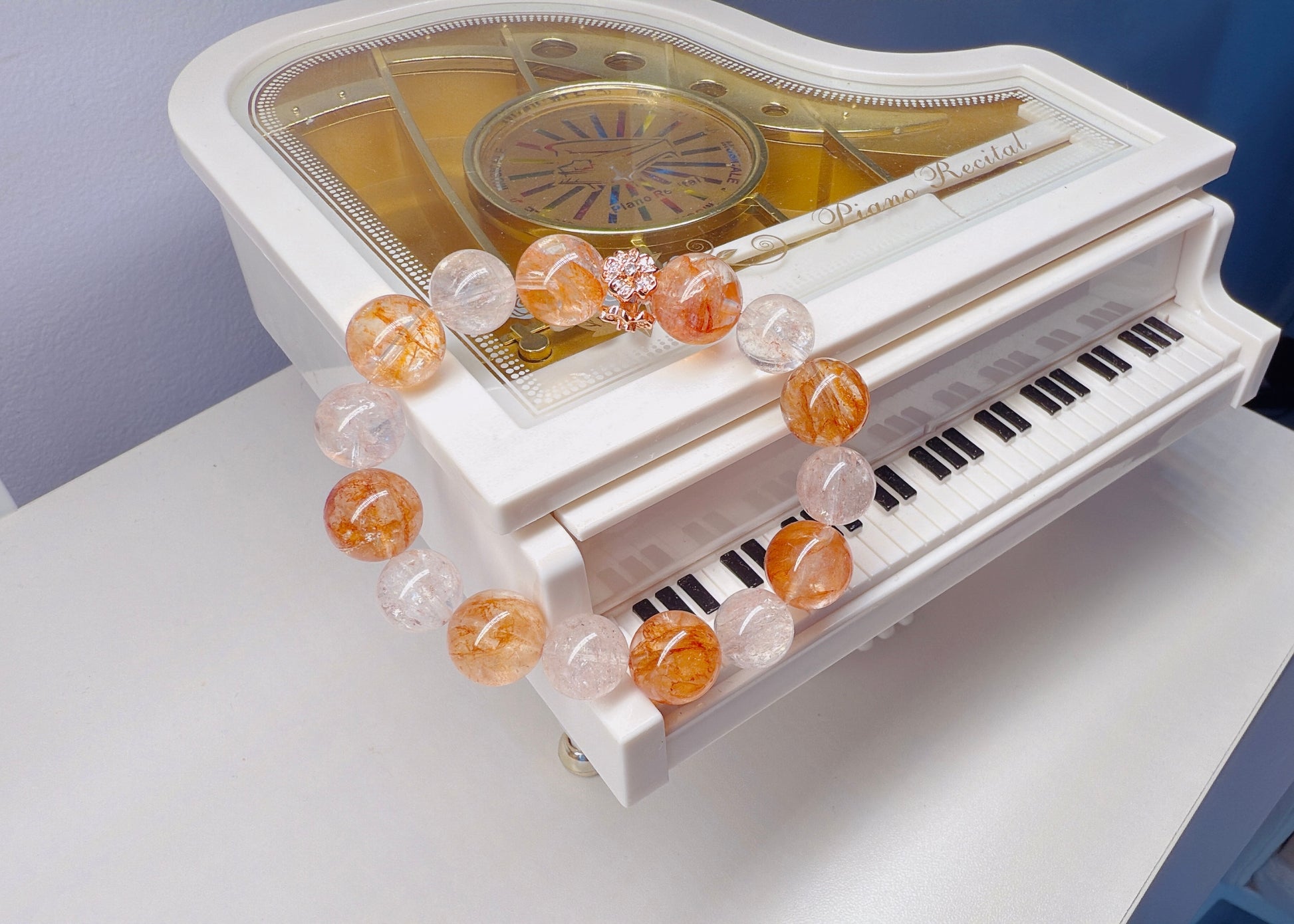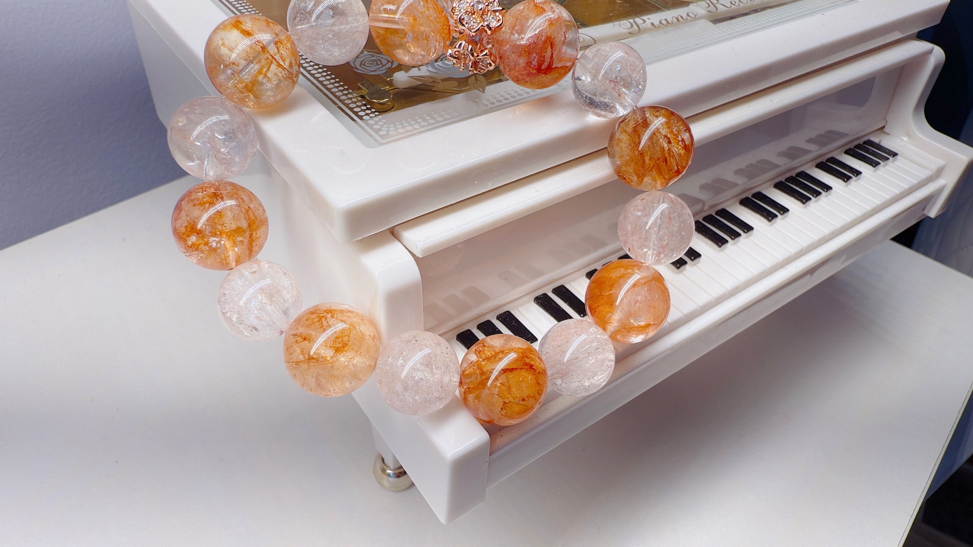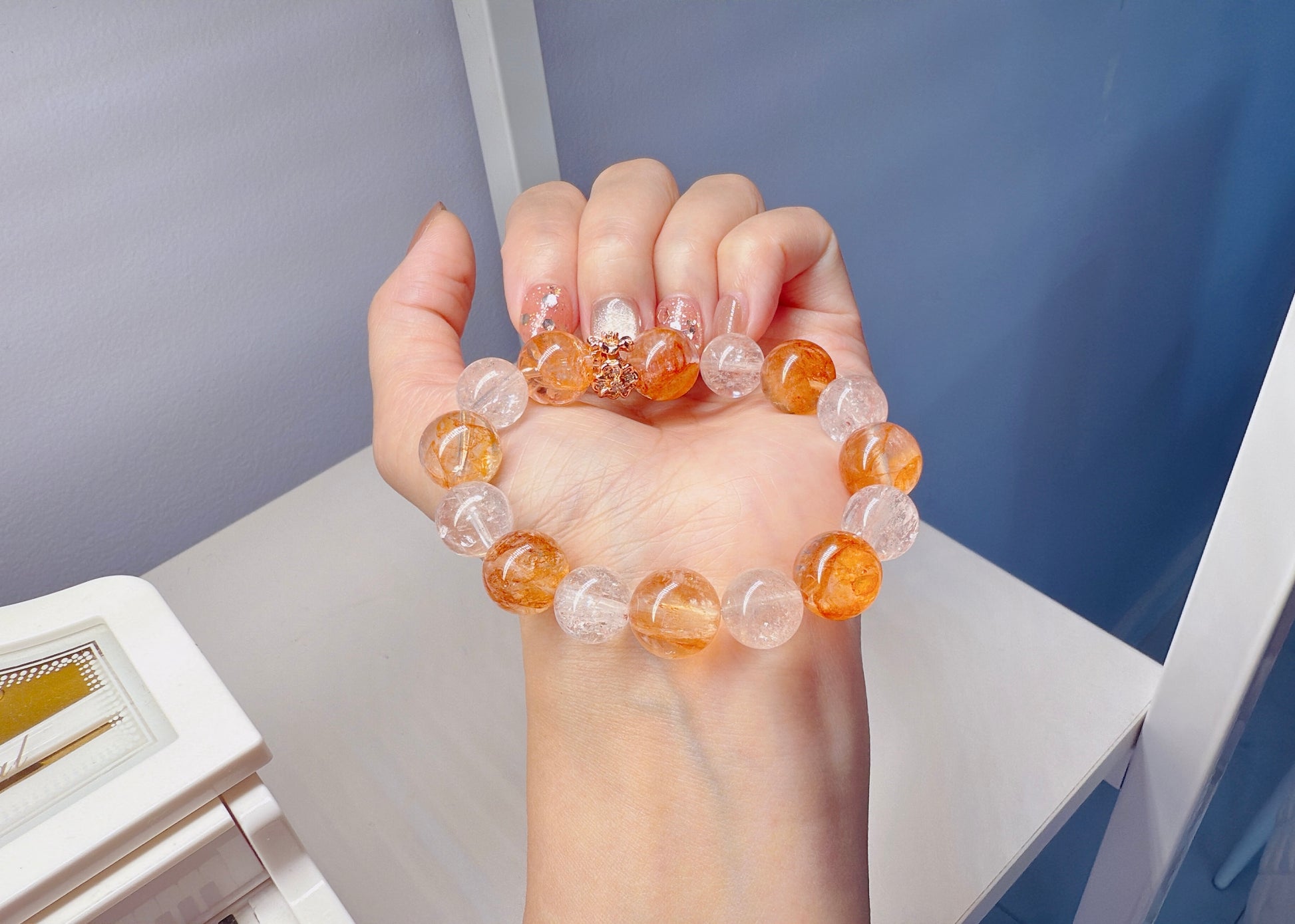 Fanta Quartz, named for its bright orange hue that resembles the sparkling sweetness of orange soda, features unique flower-like inclusions inside its clear crystal body. This lively gem is cherished for both its beauty and uplifting energy. 13.5mm+