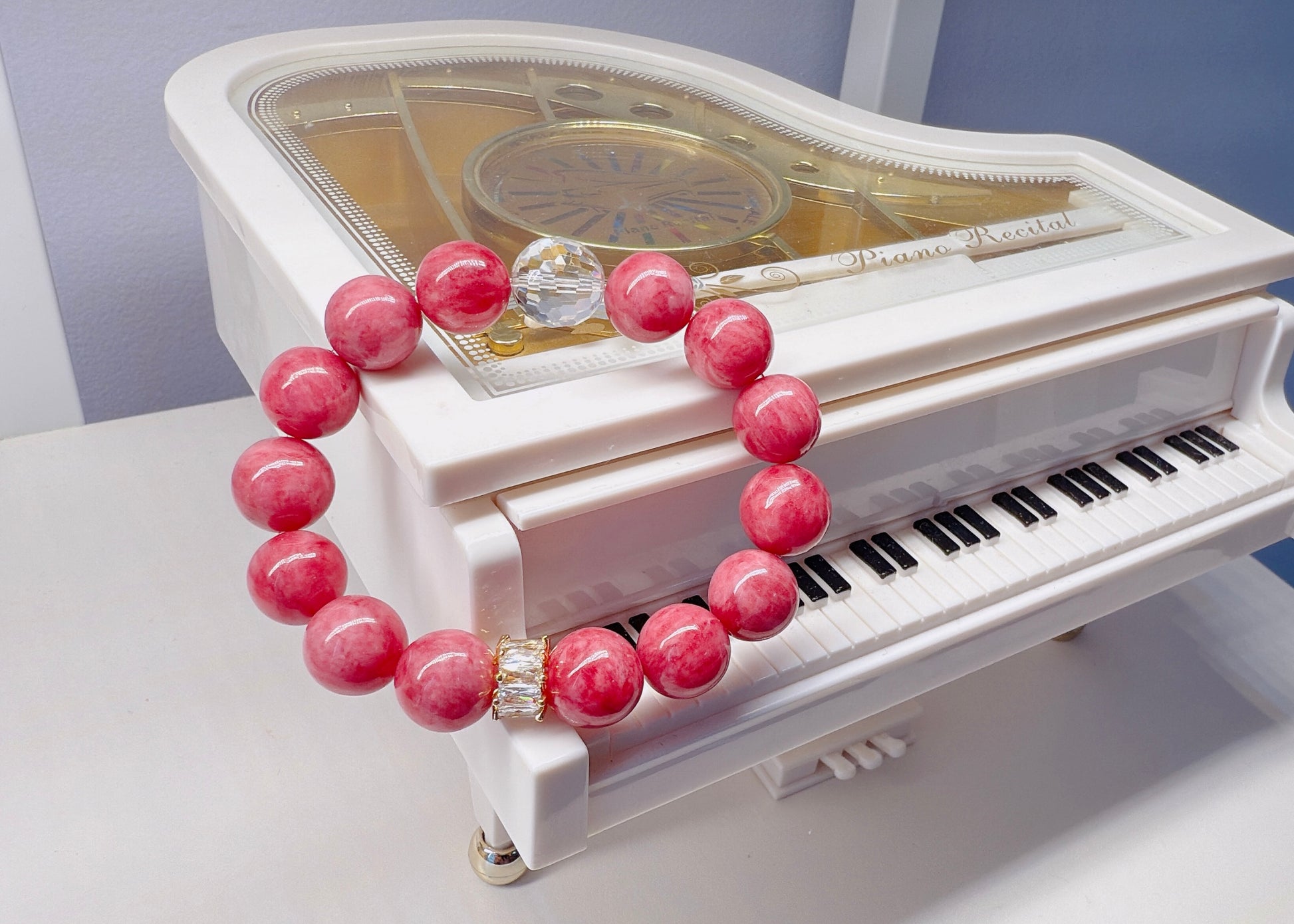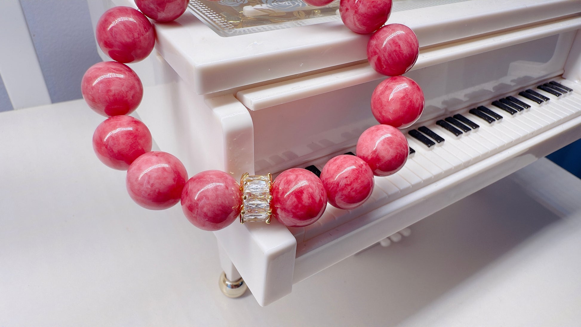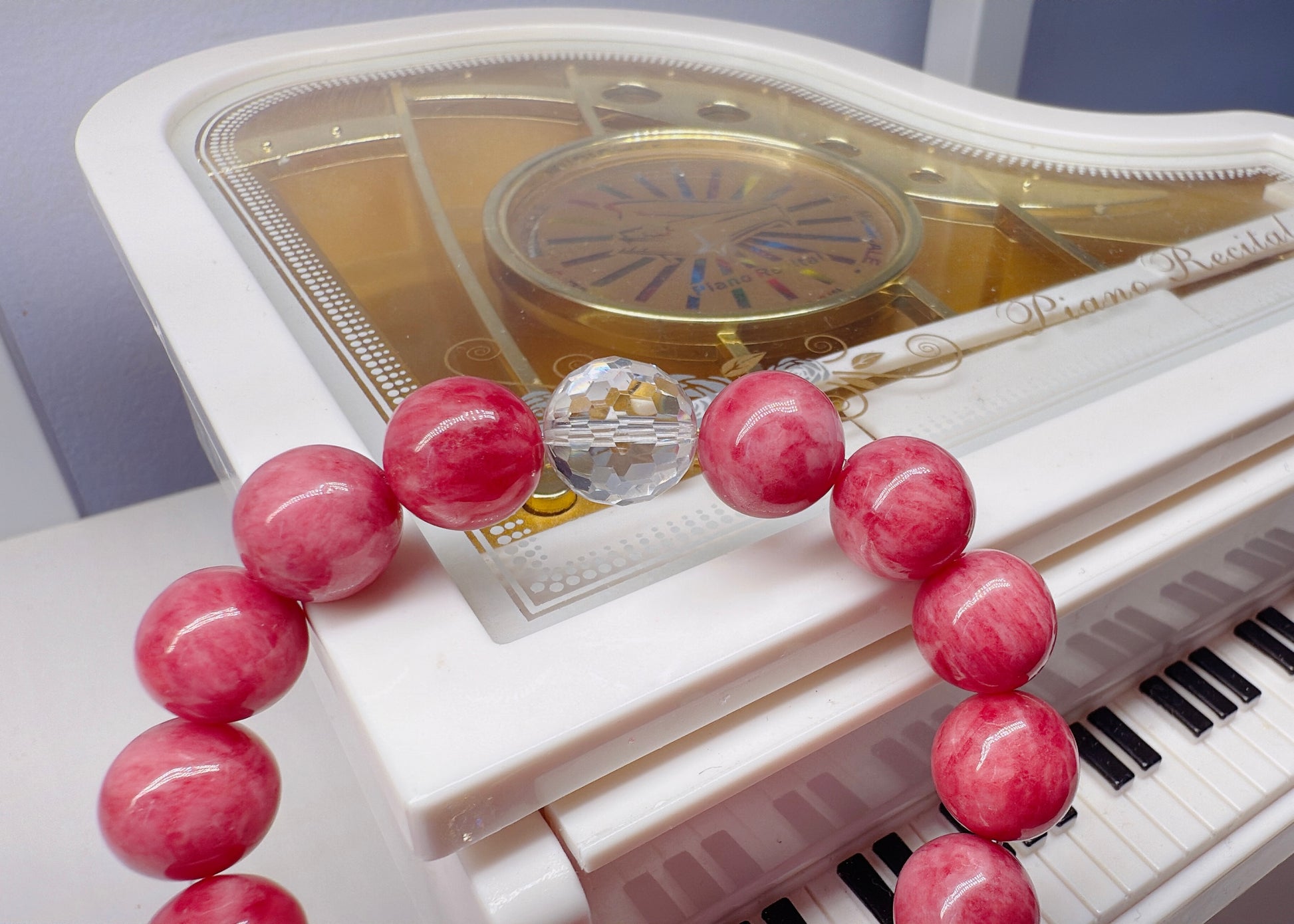 Rhodonite, also known as Rose Pyroxene Quartz in some circles, is cherished for its gentle pink hue and delicate, flower-like patterns. Revered for its emotional healing properties, this stone brings warmth and harmony to the heart. 12mm+